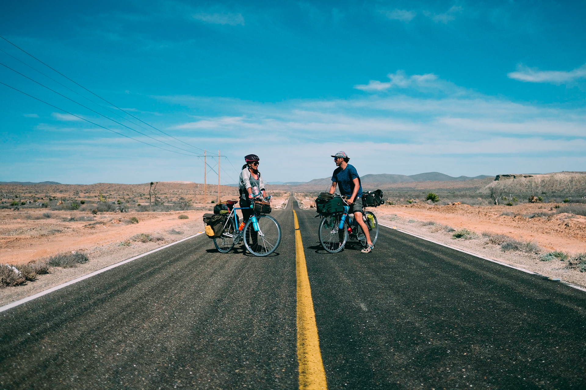 Pedalear a Bahía de los Ángeles fue de lo más pesado. Aquel día nos alcanzó la noche y el viento estaba realmente fuerte; a Arely le tiró la bici. También varias vacas nos brincaron en la carretera. La carretera, la más hermosa que he visto... Cactus enormes, y cirios por todos lados. Desierto. Arely por poco colapsa, supongo que no hay manera de explicarlo, demasiadas emociones. No dejó de empujar. Fue su primer biciviaje, estoy sorprendido de su avance... Al final del día siempre quedó maravillada. Igual que Toño y yo.